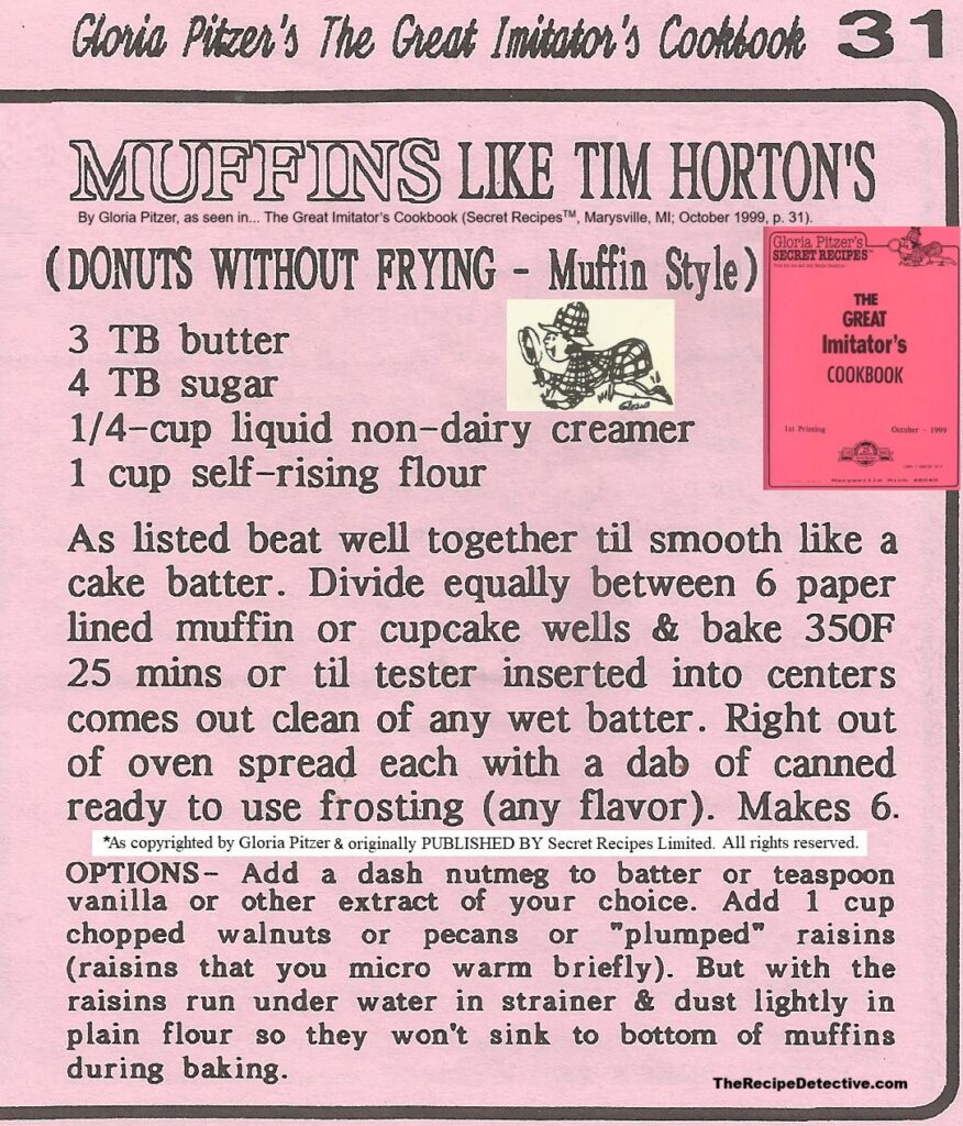 By Gloria Pitzer, as seen in… The Great Imitator’s Cookbook (Secret RecipesTM, Marysville, MI; October 1999, p. 31). As always, asking only for proper credit if you share this.